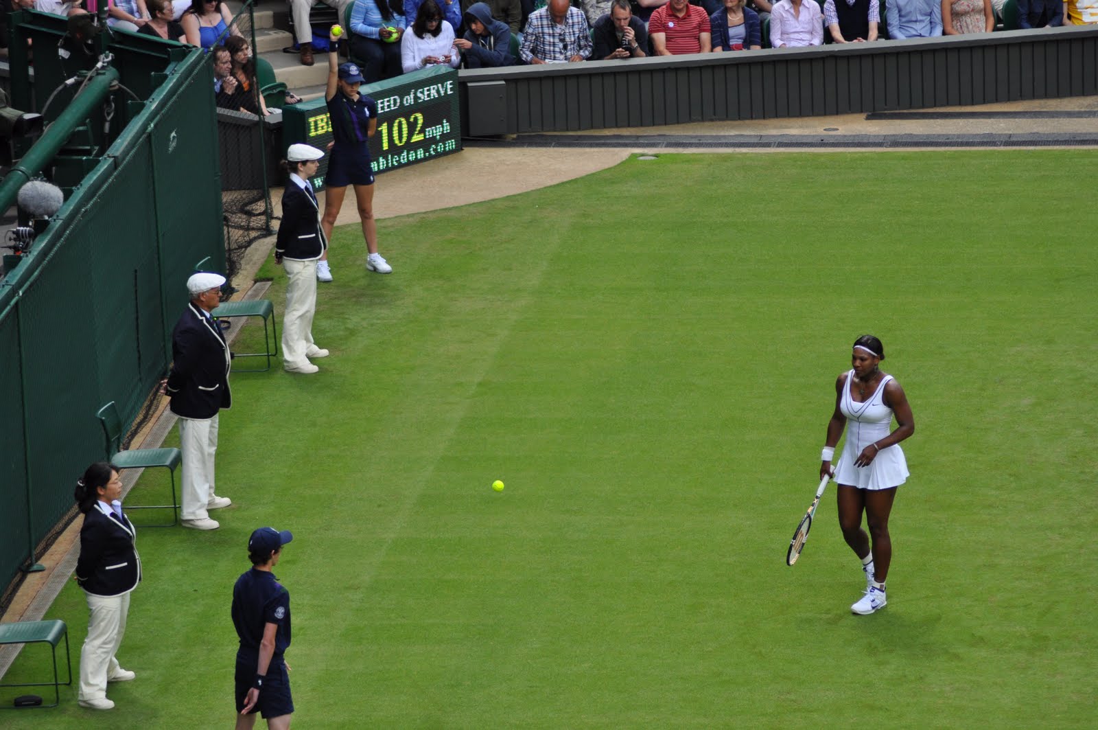 The turning point came for Rezai at 1-3 down in the 3rd set when an epic point took place (you can see it on the BBC Sport website!). Rezai looked to have an easy overhead smash but unfortunately she didn’t hit it into the empty space and it went straight back to Serena who produced a superb lob to win the point. It got the biggest applause of the day on Centre Court, however the applause on TV sounded nowhere near as loud as it did in real life!