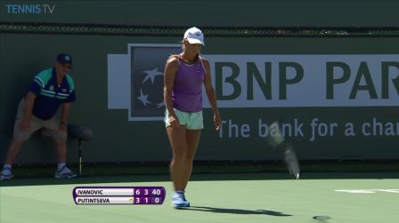 In her first match in Indian Wells, Ivanovic faced three break points in her first two service games, but saved them all with forehand winners to go up 3-0*. She rode that break to the end to bag the opening set, 6-3. Ivanovic had too much power and consistency from the baseline although Putintseva did produce a handful of superbly played points. Many of the hotshots in the first set came from Putintseva and her celebrations were pretty hysterical. Putintseva’s backhand slice was very impressive including one outright winner that completely caught Ivanovic off-guard. Putintseva, who won three matches this week coming through as a qualifier, hung around at the end of the set with some typically gutsy play.