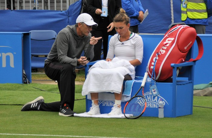 I was sitting very near Halep’s coach, Darren Cahill and it was interesting to see how much Simona looked over to him and her team during the match. I could hear Darren giving plenty of encouragement with “come on Simo” and “hang in there”. She did exactly what Darren wanted though and hung around, saving four break points at *2-2 and digging out of a *0-40 hole.